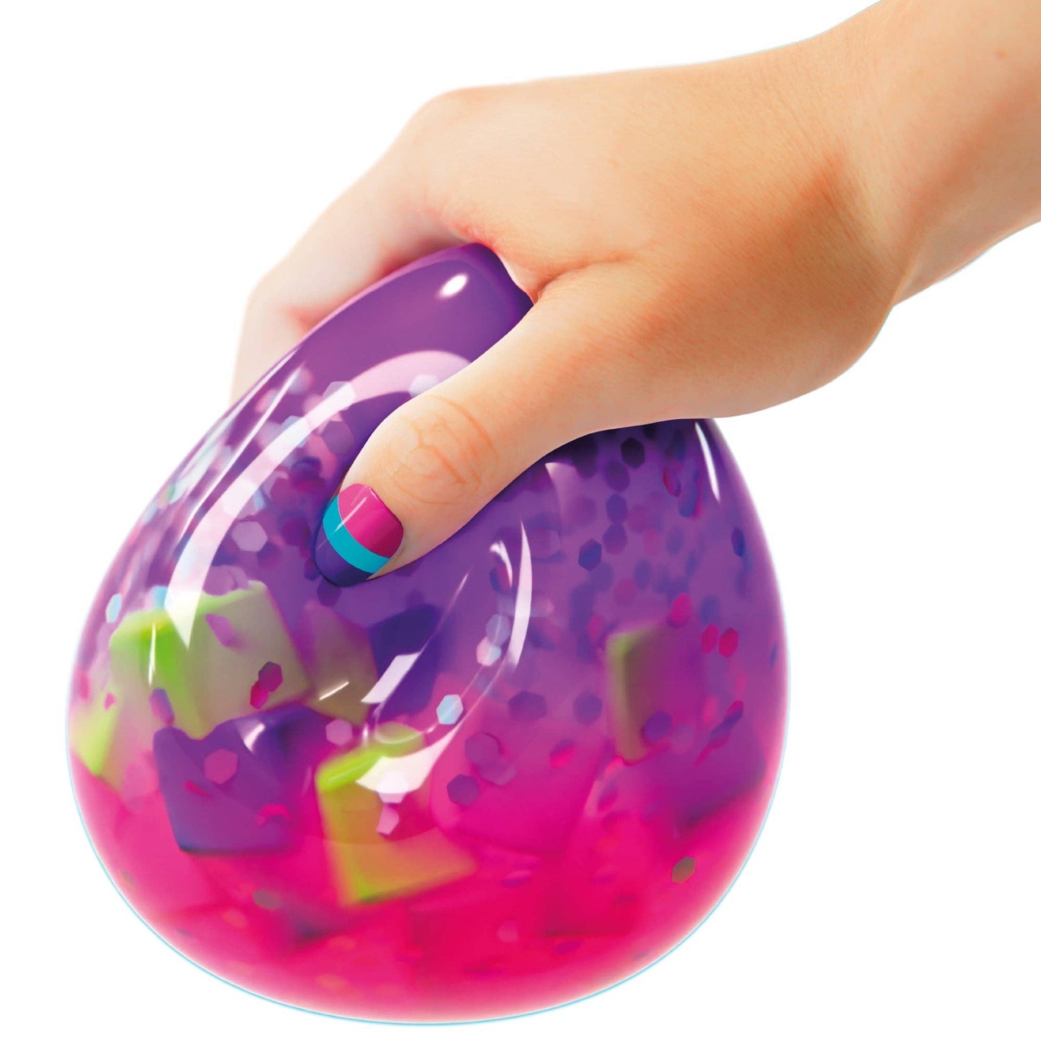 Kids start by inflating a balloon to their desired size, then add the powder and other mix-ins. After sealing it with a clip and decorating it with glitter and ribbon, they have a unique squishy toy to squeeze, squash and display.